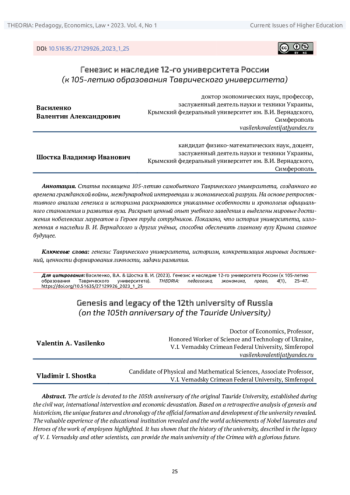 23. Лавров, В. В. & Ишин, А. В. (2000). В.И. Вернадский и Таврический университет. Крымский Архив, 6, 182-208. EDN: ZGYGUN