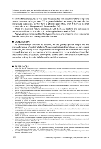 Conclusion. As biotechnology continues to advance, we are gaining greater insight into the chemical makeup of medicinal plants. Through sophisticated techniques, we can extract, fractionate, and identify a wide range of bioactive compounds, each with their own unique chemical structure and mechanism of action. A promising recent study has shown that the alkaloid extract of Leucaena leucocephala exhibits both antimicrobial and antioxidant properties, making it a potential alternative medicine treatment.