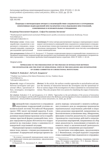 В статье авторы рассматривают подходы к периодизации и анализируют интенсивность взаимодействия следователя и оперативного сотрудника на различных этапах расследования преступлений, совершенных в исправительных учреждениях. Также они предлагают свою систему классификации этапов взаимодействия.