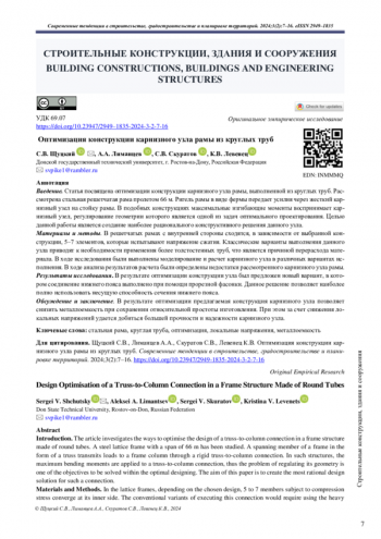 3. Щуцкий С.В., Скуратов С.В., Лиманцев А.А. Методика проектирования стальных рам переменного сечения из прокатных двутавров. Современные тенденции в строительстве, градостроительстве и планировке территорий. 2022;1(4):4–14. https://doi.org/10.23947/2949-1835-2022-1-4-4-14 Shchutsky SV, Skuratov SV, Limantsev AA. Methodology for Designing the Steel Frames of Variable Cross-Section from Rolled I-Beams. Modern Trends in Construction, Urban and Territorial Planning. 2022;1(4):4–14.