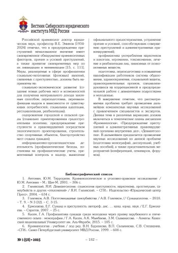 15. Эминов, В.Е. Причины преступности в России: криминологический и социально-психологический анализ / В.Е. Эминов. - М.: Норма: ИНФРА-М, 2011. - 128 с. EDN: SDQRTV