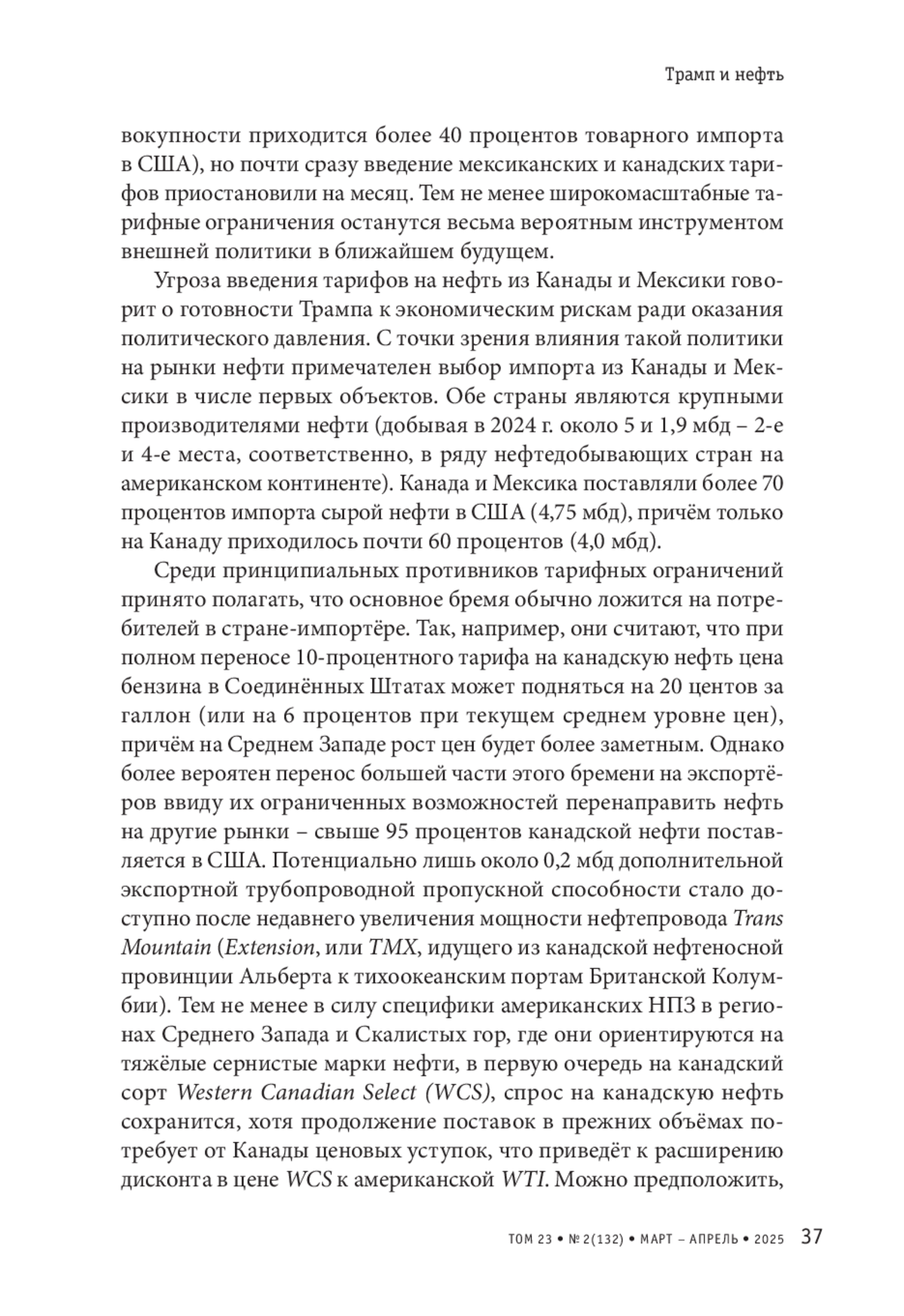 Вновь избранный президентом США Дональд Трамп пришёл в Белый дом с большой программой преобразований, в том числе экономического характера, затрагивающей рынки нефти и газа, и командой, нацеленной на её жёсткую реализацию. Однако сама программа всё ещё не имеет чётких очертаний, а система сдержек и противовесов (даже с учётом контроля партией президента обеих палат Конгресса), скорее всего, не позволит ей воплотиться в жизнь в исходном виде.