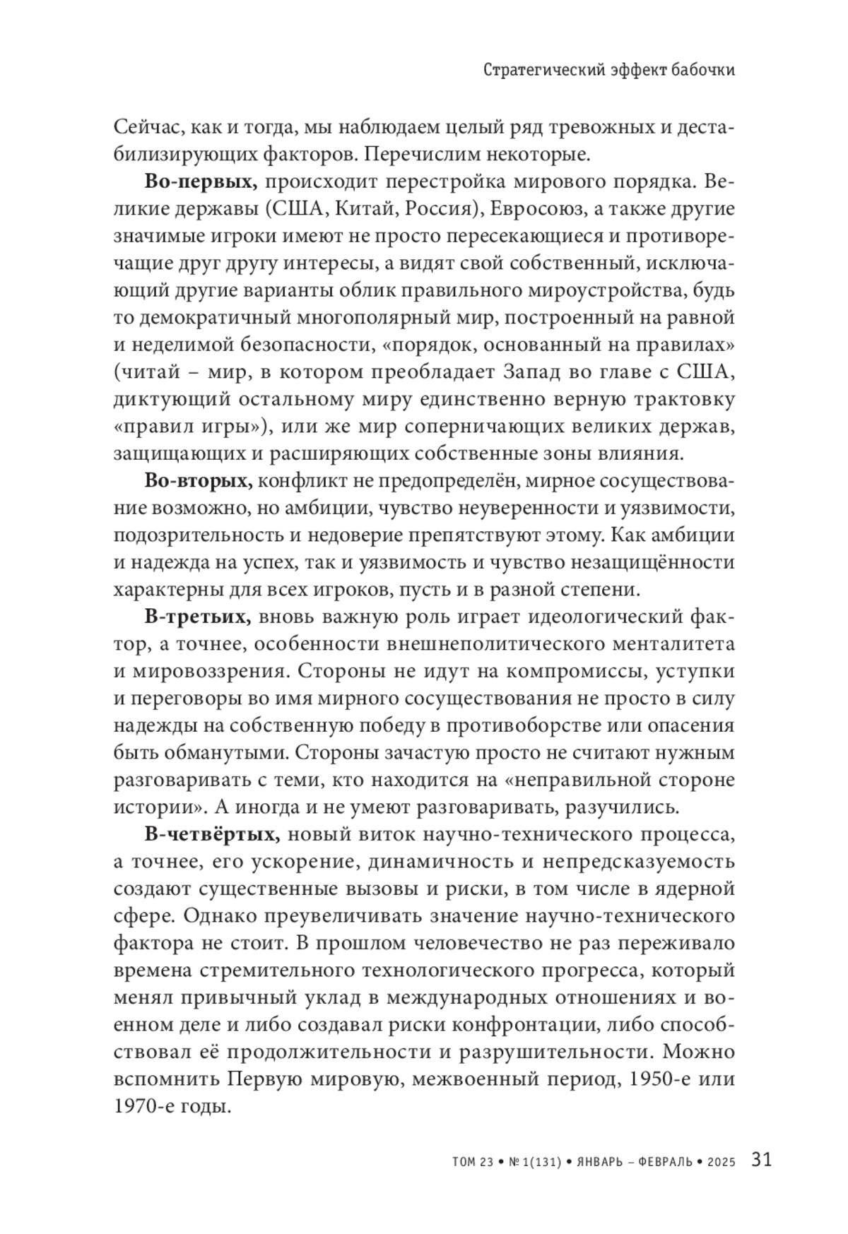 Ядерный фактор всё теснее переплетается с неядерными, и, как показывают дискуссии двух последних лет, не всегда удаётся отличить реальное от воображаемого. Вместе с этим всё труднее отделить и долгосрочные, системные тенденции трансформации ядерного сдерживания от сиюминутных острых реакций.