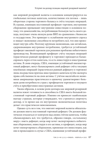 Мы живём в мире, где одна национальная валюта – американский доллар и один национальный центральный банк – Федеральная резервная система США функционируют как международная резервная валюта и мировой кредитор последней инстанции. Как говорили ещё в 1960-е гг., доллар даёт Соединённым Штатам долгосрочную «непомерную привилегию» гасить долги и приобретать реальные ресурсы, просто печатая деньги. А отсутствие настоящего глобального кредитора позволяет ФРС в период кризисов обеспечивать ликвидностью ограниченный круг своих союзников и сателлитов. Остальному миру в случае проблем с платёжным балансом приходится использовать дорогие международные резервы или обращаться в Международный валютный фонд (МВФ).