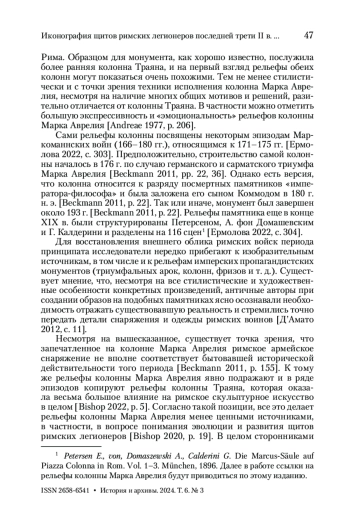 6. Ермолова 2022 - Ермолова И.Е. Варвары на колоннах Траяна и Марка Аврелия // Будущее нашего прошлого-7: историческая память и коммеморативные практики: Материалы международной научной конференции, 26-27 ноября 2021 г. М.: РГГУ, 2022. С. 303-308.