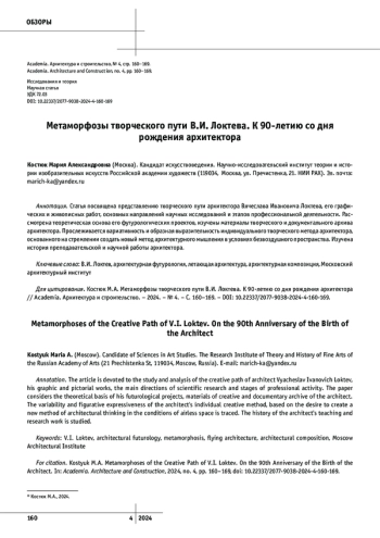 КОСТЮК М. А. МЕТАМОРФОЗЫ ТВОРЧЕСКОГО ПУТИ В. И. ЛОКТЕВА. К 90-ЛЕТИЮ СО ДНЯ РОЖДЕНИЯ АРХИТЕКТОРА // ACADEMIA. АРХИТЕКТУРА И СТРОИТЕЛЬСТВО. 2024. № 4