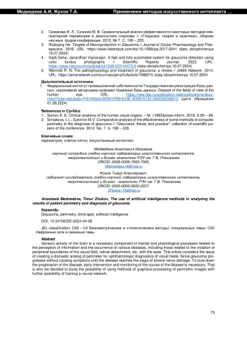 4. Sajib Saha, Janardhan Vignarajan. A fast and fully automated system for glaucoma detection using color fundus photographs // Scientific Reports Journal. 2023. URL: https://www.nature.com/articles/s41598-023-44473-0 (data obrashcheniya 16.07.2024).