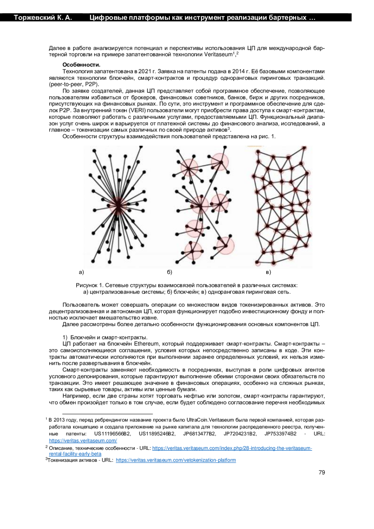 В статье рассматриваются возможности использования цифровых платформ в бартерной торговле. Исследуется роль бартера на современном этапе в условиях ужесточения экономических санкций и торговых войн на примере цифровой платформы, получившей патент в бюро США и Японии на перемещение ценностей с помощию технологии распределенного реестра (блокчейн) и являющейся интеллектуальной собственностью ее создателя.