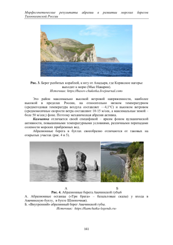Камчатка отличается своей спецификой – ярким фоном вулканической активности, повышенными температурными условиями, различными перепадами солености морских прибрежных вод. Абразионные берега в бухтах своеобразно отличаются от таковых на открытых участах (рис. 4 и 5).