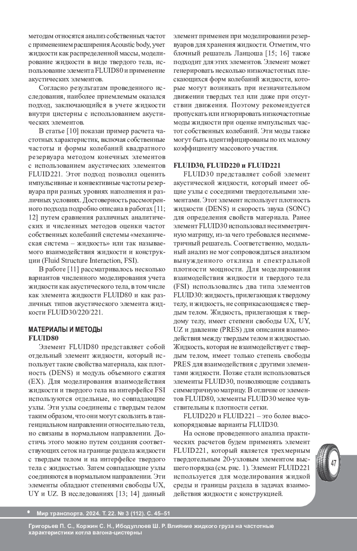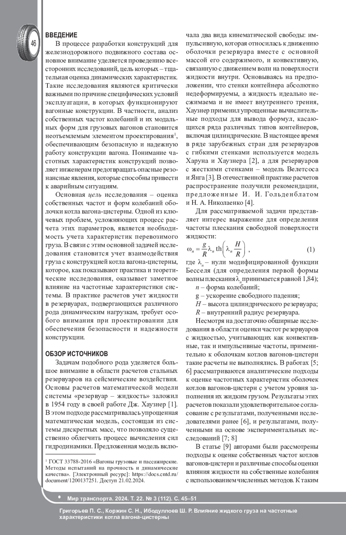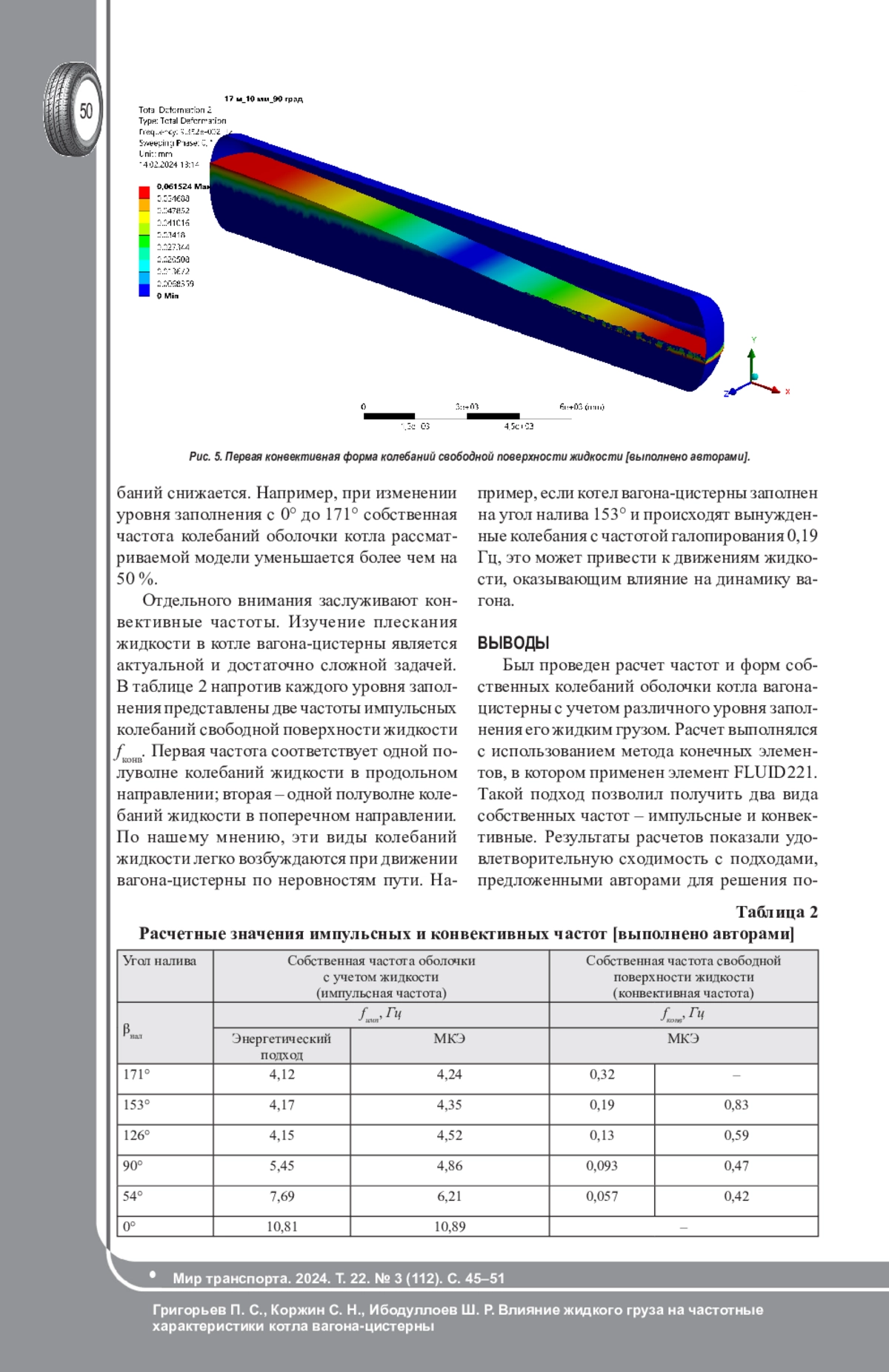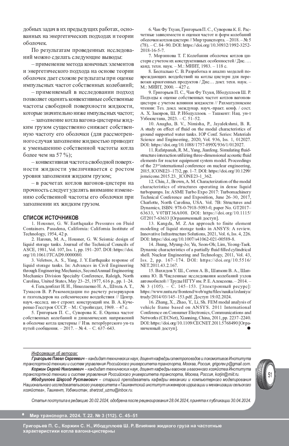 6. Чан Фу Тхуан, Григорьев П. С., Суворова К. Е. Расчетные зависимости и оценки частот и форм колебаний оболочки котлов цистерн // Мир транспорта. - 2018. - № 5 (78). - С. 84-90. DOI: 10.30932/1992-3252-2018-16-5-7