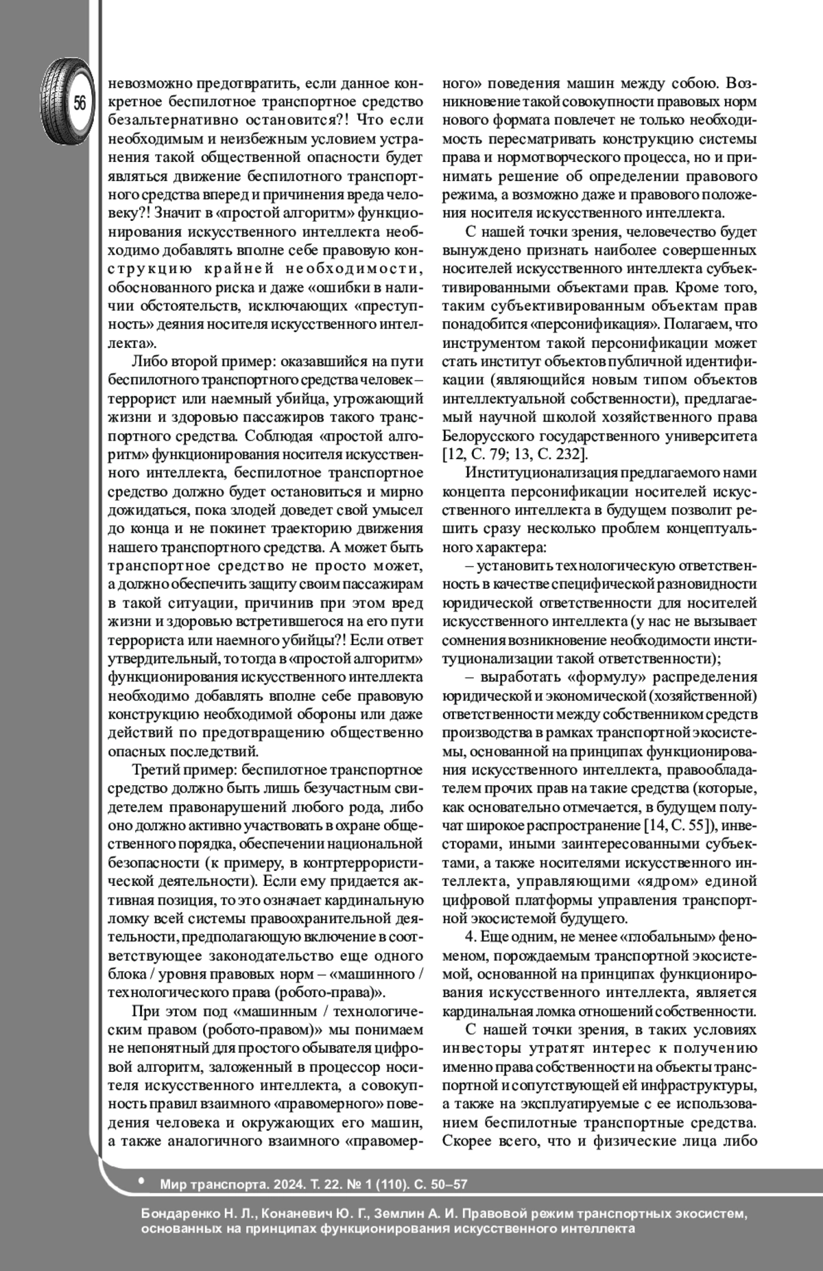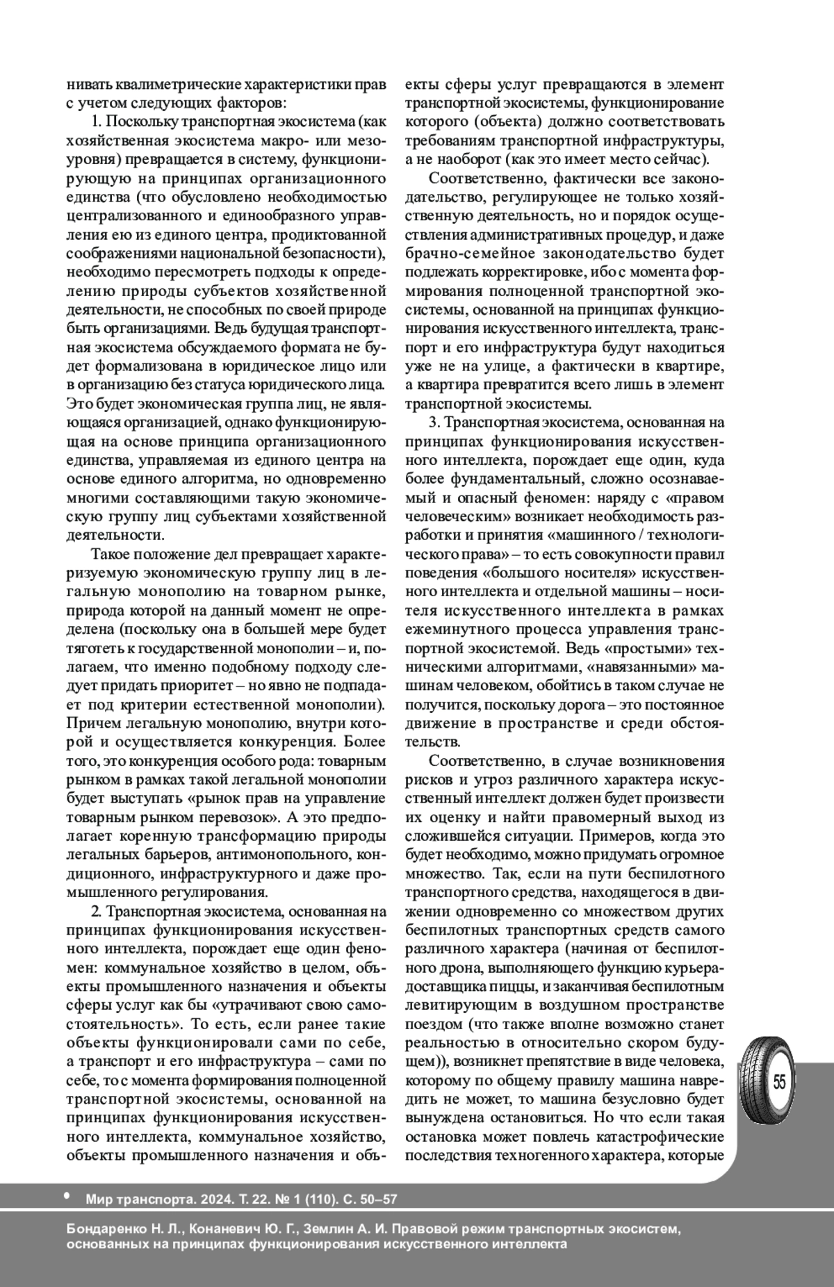 2. Землин А. И., Матвеева М. А., Гоц Е. В., Торшин А. А. Проблемные вопросы правового регулирования использования автомобилей с автоматизированной системой вождения // Мир транспорта. - 2022. - Т. 20. - № 4 (101). - С. 117-122. DOI: 10.30932/1992-3252-2022-20-4-11 EDN: QLAYCZ