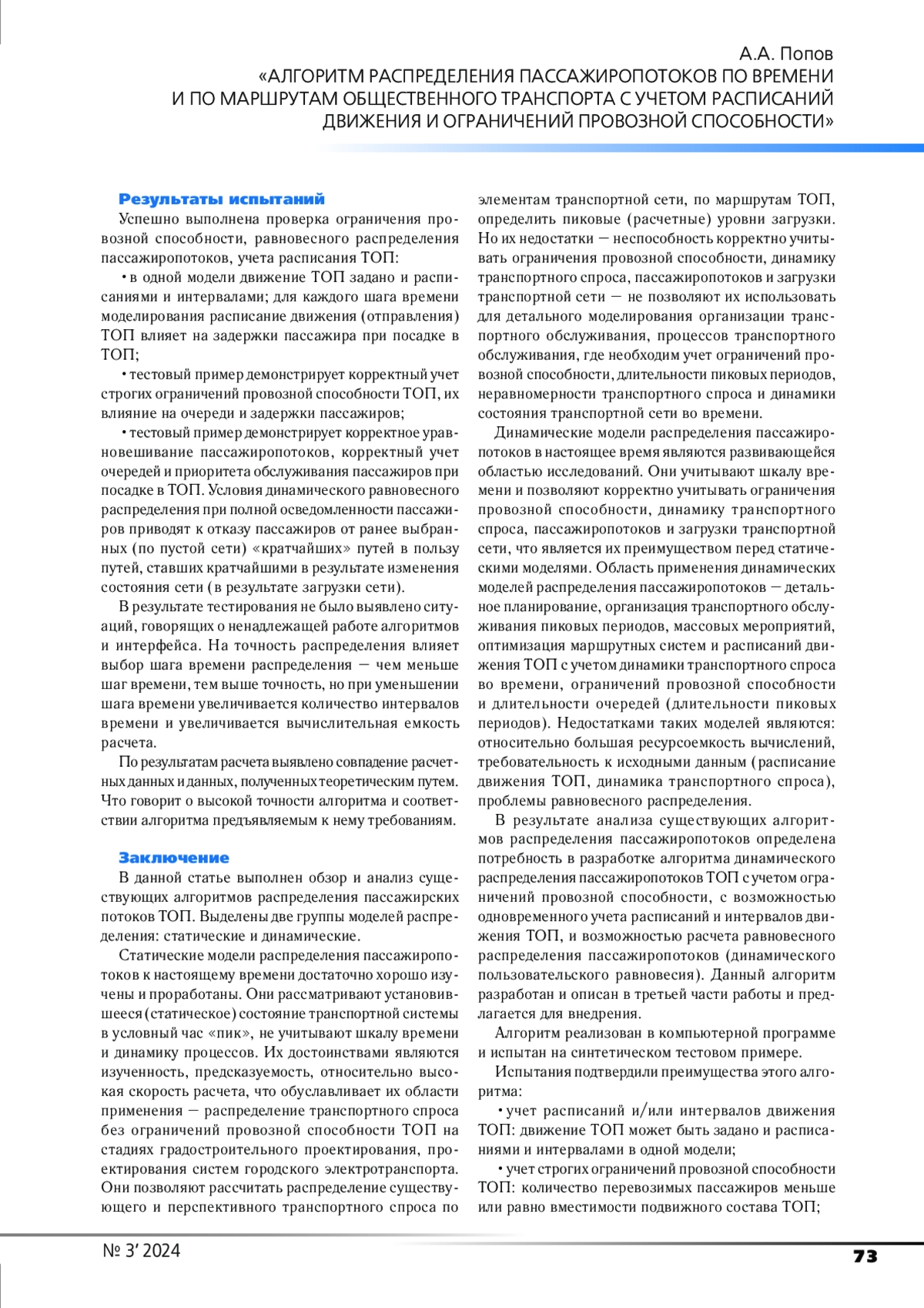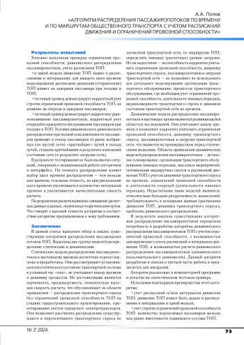 25. Liu Qi, Chow Joseph Y.J. A congested schedule-based dynamic transit passenger flow estimator using stop count data. - URL: https://www.researchgate.net/publication/353344667_A_congested_schedule-based_dyn-amic_transit_passenger_flow_estimator_using_stop_count_data (дата обращения: 2023-06-24).
