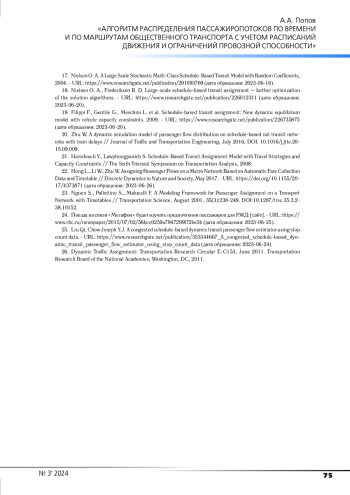 18. Nielsen O. A., Frederiksen R. D. Large-scale schedule-based transit assignment - further optimization of the solution algorithms. -URL: https://www.researchgate.net/publication/226012311 (дата обращения: 2023-06-20).