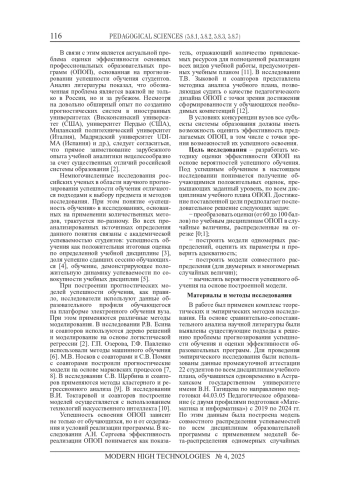 6. Озерова Г.П., Павленко Г.Ф. Прогнозирование успешности студентов при смешанном обучении с использованием данных учебной аналитики // Science for Education Today. 2019. Т. 9, № 6. С. 73-134. DOI: 10.15293/2658-6762.1906.05 EDN: VLPTDE