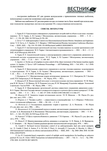 5. Saushev A. On the use of templates in joint control of the object movement of the human-machine ergatic system / A. Saushev, V. Tyrva // AIP Conference Proceedings. - AIP Publishing, 2023. - Vol. 2476. - Is. 1. DOI: 10.1063/5.0103854
