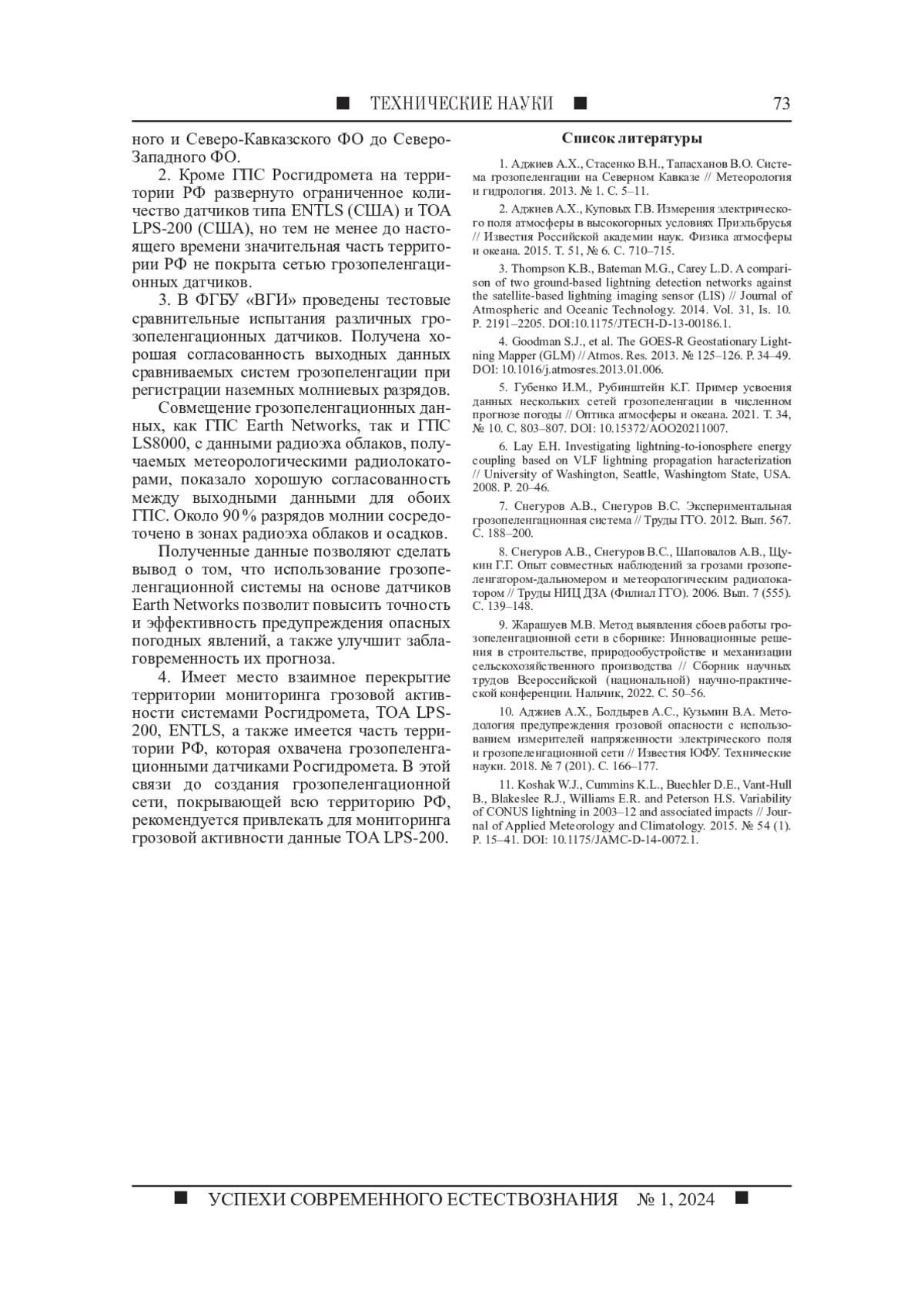 1. Аджиев А.Х., Стасенко В.Н., Тапасханов В.О. Система грозопеленгации на Северном Кавказе // Метеорология и гидрология. 2013. № 1. С. 5-11. EDN: PUJIBL