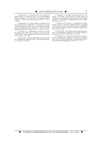 5. Желтова Д.В. Значение формирования водоохранных зон и прибрежных защитных полос // Вестник науки. 2023. Т. 4, № 8 (65). С. 440-443.