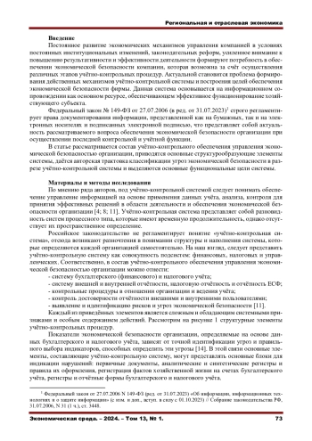 Постоянное развитие экономических механизмов управления компанией в условиях постоянных институциональных изменений, законодательных реформ, усиленное внимание к повышению результативности и эффективности деятельности формируют потребность в обеспечении экономической безопасности компании, которая возможна за счёт осуществления различных этапов учётно-контрольных процедур. Актуальной становится проблема формирования действенных механизмов учётно-контрольной системы и построения целей обеспечения экономической безопасности фирмы. Данная система основывается на информационном сопровождении как основном ресурсе, обеспечивающем эффективное функционирование хозяйствующего субъекта