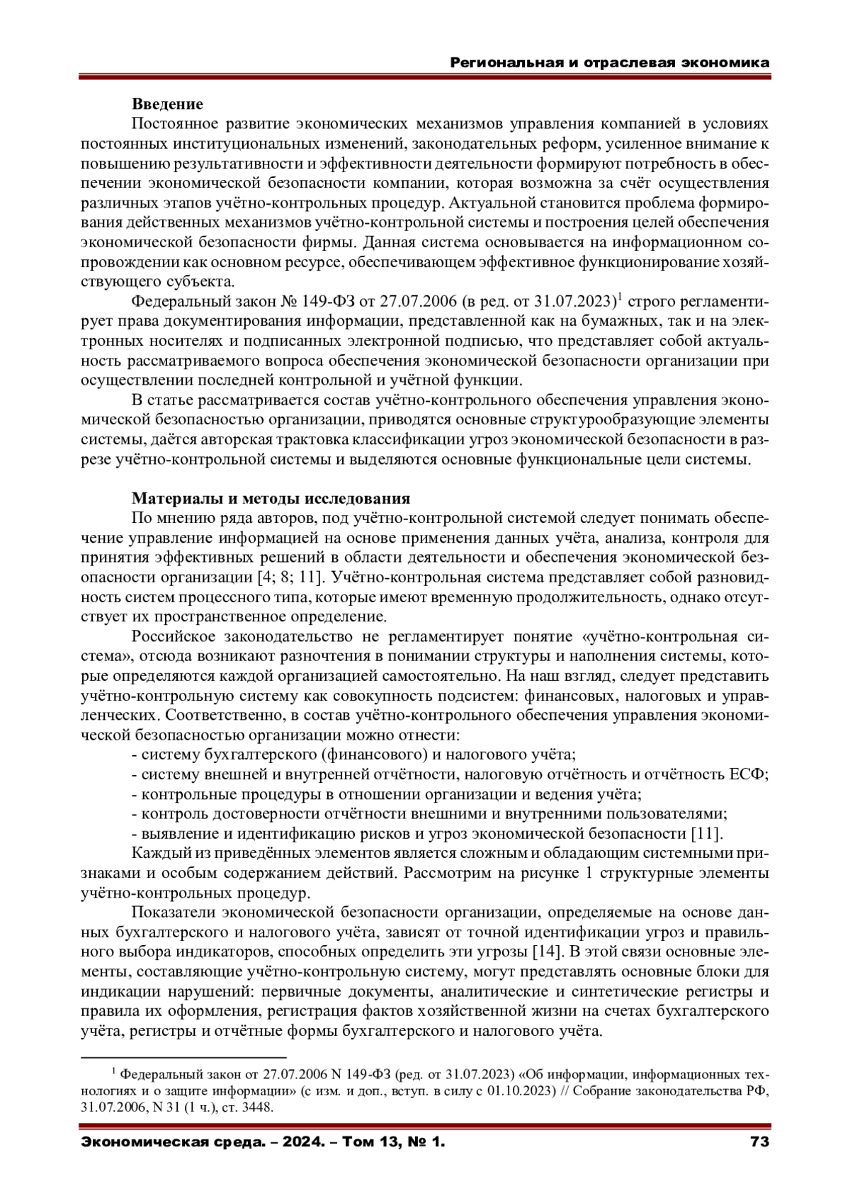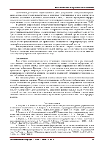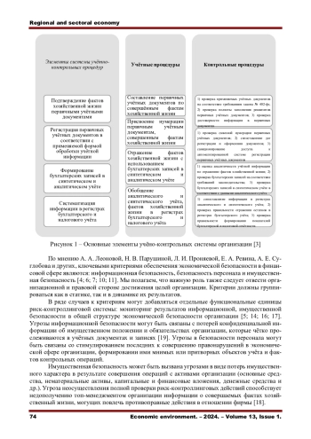 11. Ревин, Е. А. Концепция учетно-контрольного обеспечения управления экономической безопасностью организации / Е. А. Ревин // Инновационное развитие экономики. - 2016. - № 2(32). - С. 202-205. EDN: VWODYP