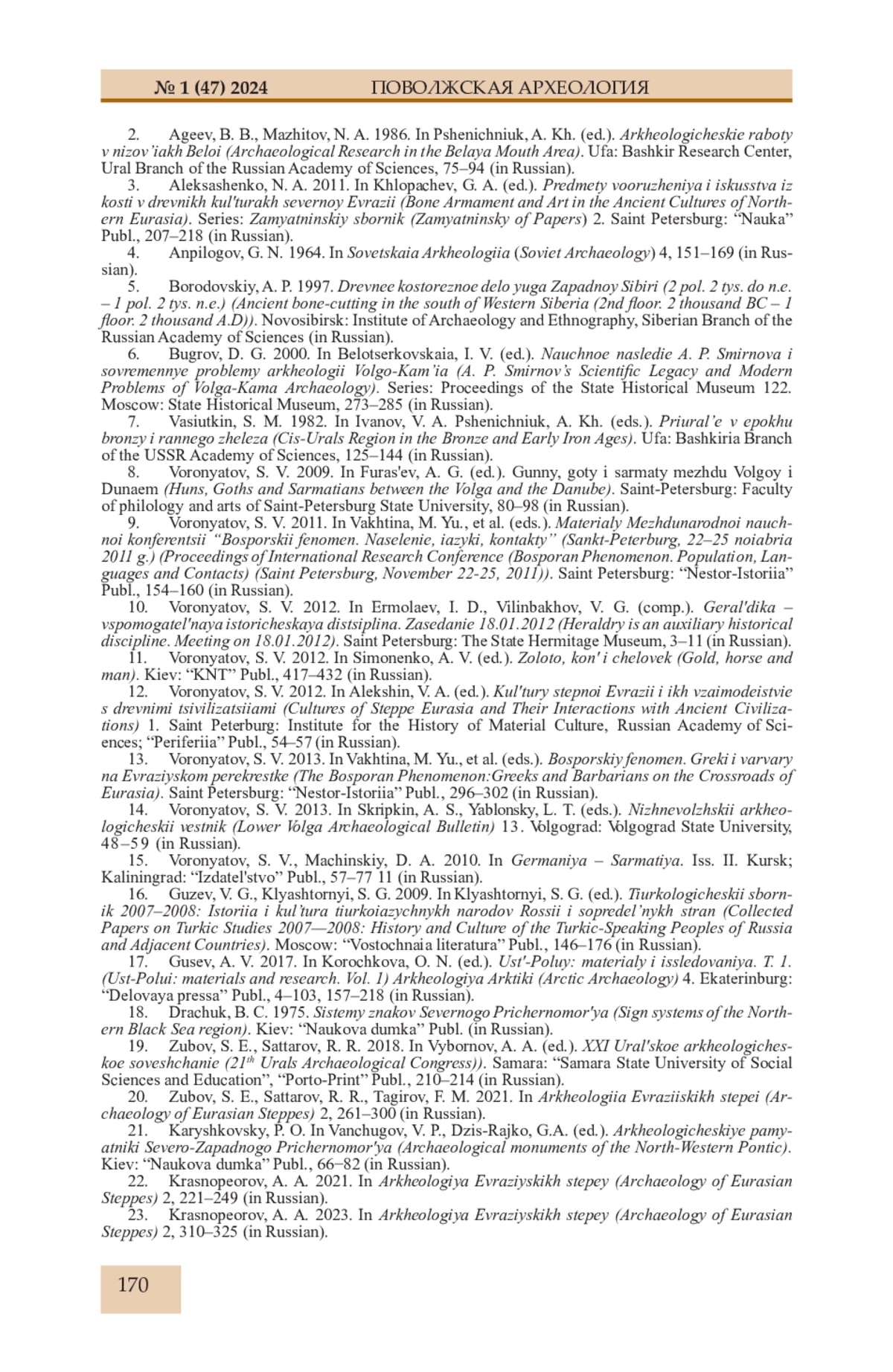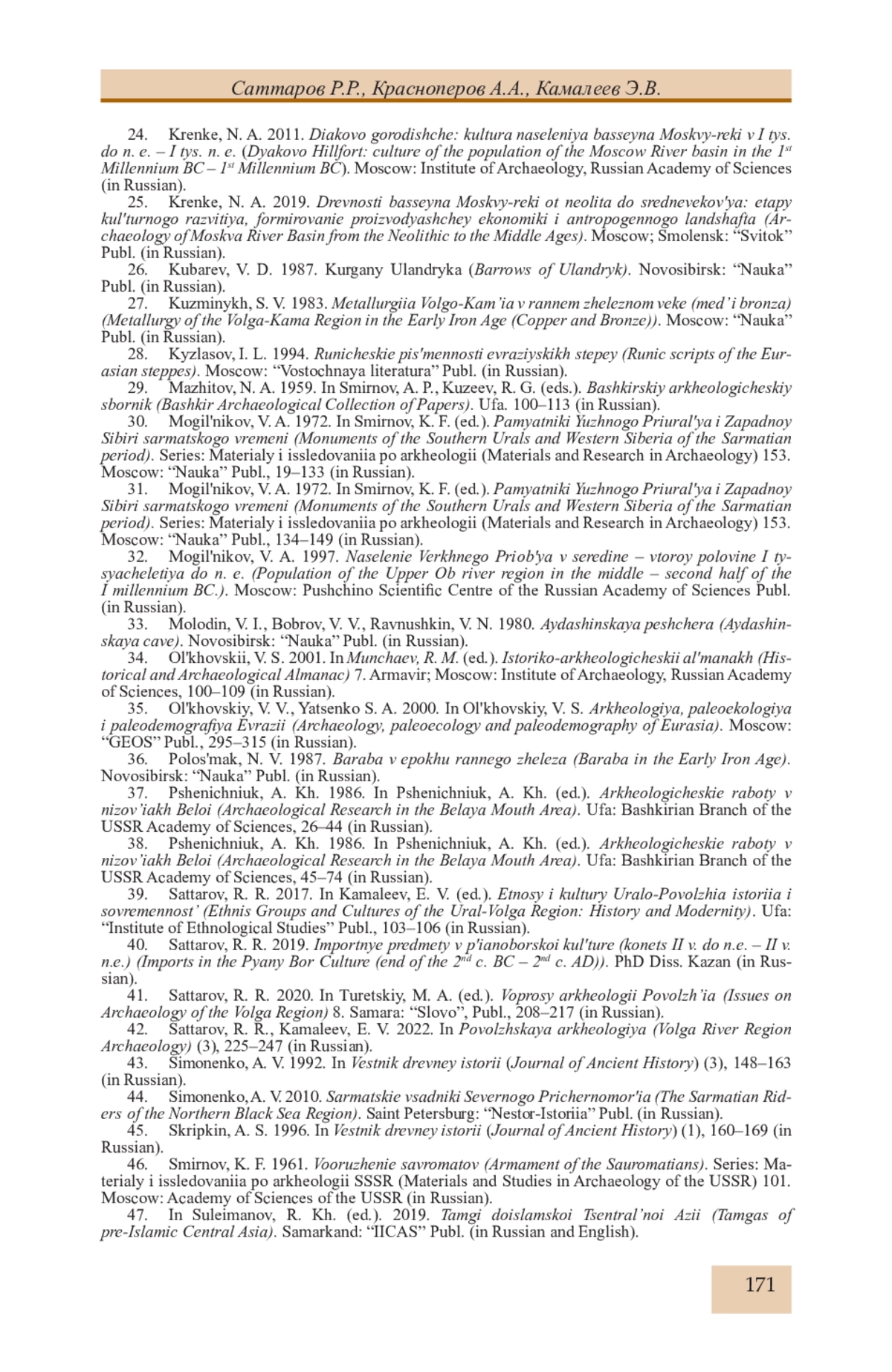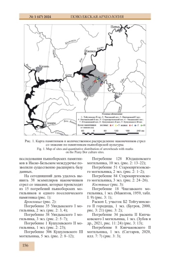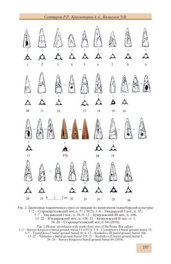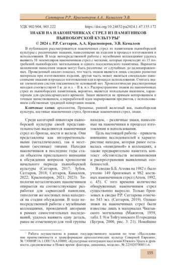 САТТАРОВ Р. Р., КРАСНОПЕРОВ А. А., КАМАЛЕЕВ Э. В. ЗНАКИ НА НАКОНЕЧНИКАХ СТРЕЛ ИЗ ПАМЯТНИКОВ ПЬЯНОБОРСКОЙ КУЛЬТУРЫ // ПОВОЛЖСКАЯ АРХЕОЛОГИЯ. 2024. № 1 (47)