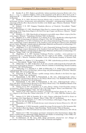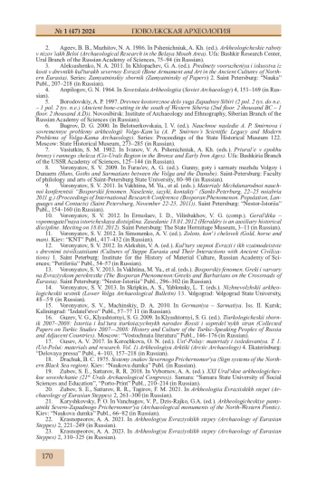 В публикации рассматриваются наконечники стрел из памятников пьяноборской культуры с различными знаками, нанесенными на изделия в процессе изготовления и использования. В ходе непосредственной работы с музейными коллекциями удалось выявить 38 экземпляров наконечников стрел с метками, которые происходят из 15 погребений пьяноборских могильников и одного поселенческого памятника. Варианты назначения нанесения знаков могут быть различны: от случайных до целенаправленных. Проведенный анализ показал, что часть знаков является лишь следами разметки материала при изготовлении изделия, другая часть может являться специально нанесенными знаками в процессе изготовления или в процессе использования. Считать знаки элементами систем письменности оснований нет. Хронологически рассмотренные находки соответствуют I в. до н. э. - II в. н. э. Распространение знаков на наконечниках стрел из пьяноборских памятников, вероятно, является эпохальным явлением, характерным для среднесарматского времени. Знаки являются не прямым копированием и точным заимствованием, а переработкой идеи маркирования предметов, с использованием собственных традиций начертания знаков.