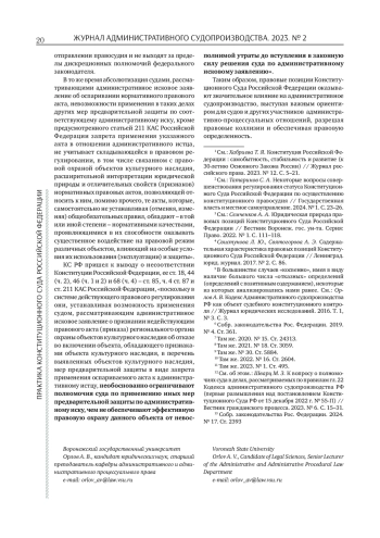 Статья: ПРАВОВЫЕ ПОЗИЦИИ КОНСТИТУЦИОННОГО СУДА РОССИИ И ИХ ПРОЯВЛЕНИЕ В АДМИНИСТРАТИВНОМ СУДОПРОИЗВОДСТВЕ (2023)