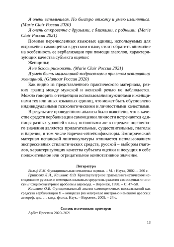 2. Кашкина О.В. Функциональный анализ самооценочных высказываний как средства вербализации Я - концепта (на материале интервью немецкой прессы): автореф. дис.. канд. филол. Наук. - Воронеж, 2005. - 24 с. EDN: ZNBQHH