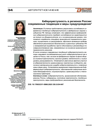 3. Латентность киберпреступности превысила 60 % - Сидоренко // РАПСИ - Российское агентство правовой и судебной информации. URL: https://rapsinews.ru/digital_law_news/20240424/309839280.html (дата обращения: 29.03.2025).