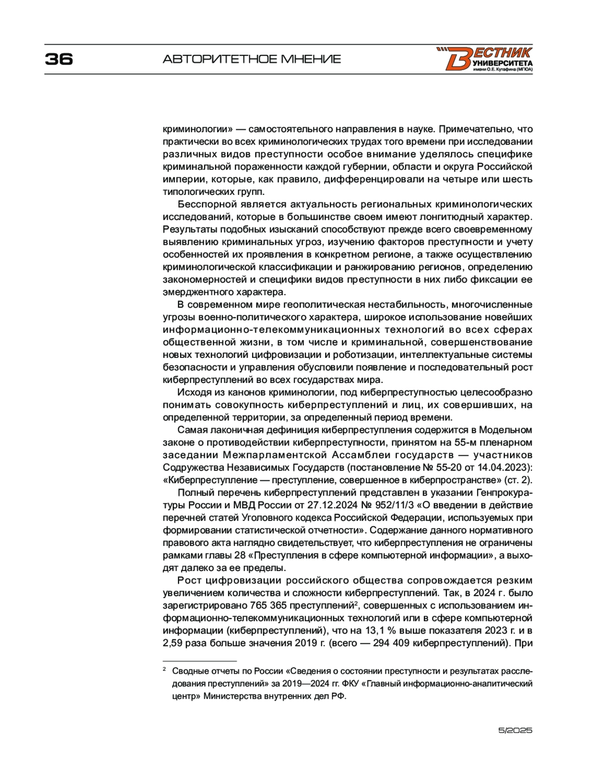 Для цитирования: Эстрин А. К вопросу о принципах построения системы уголовной репрессии1 в пролетарском государстве (Извлечение. Вестник Университета имени О. Е. Кутафина (МГЮА). 2025;(5):254-259.
