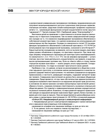 1. Русскевич Е. А. Понятие вредоносной компьютерной программы // Актуальные проблемы российского права. - 2018. - № 11. - С. 207-215.