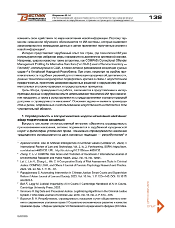 Цель обзора, приведенного в работе, заключается в представлении и интерпретации данных о зарубежном опыте использования технологий ИИ при назначении наказания, а также в сопоставлении их с представлениями уголовно-правовой доктрины о справедливости наказания. Основная задача — выявить преимущества и риски, сопряженные с использованием искусственного интеллекта в этой чувствительной области.