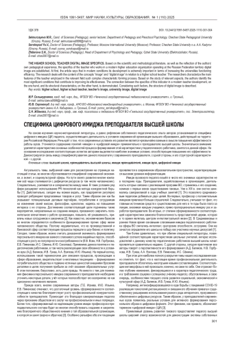 На основе изучения научно-методической литературы, а равно рефлексии собственного педагогического опыта авторов устанавливается специфика цифрового имиджа (ЦИ) педагога, осуществляющего деятельность в условиях современной организации высшего образования, действующей на территории Российской Федерации. Речь идёт о том, что в современных условиях его развитие является чрезвычайно важным в смысле повышения эффективности работы вузов. Уточняется содержание понятий «имидж» и «цифровой имидж» применительно к преподавателю высшей школы. Значительное внимание уделяется характеристике основных особенностей процесса формирования этой характеристики у педагогического работника, занятого в данной сфере. На основании исследования соответствующих аспектов авторами выделяются наиболее значимые условия, способствующие повышению его эффективности. Демонстрируется связь между спецификой развития данного показателя у современного преподавателя, с одной стороны, и его структурной характеристикой - с другой.