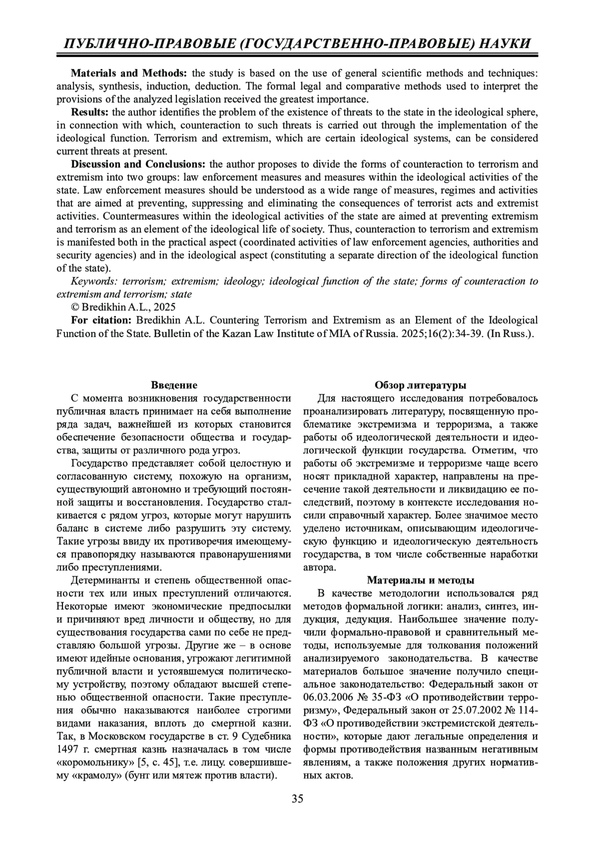 2. Галяшина Е.И., Богатырев К.М. Идеология терроризма в Российской Федерации: понятийный аппарат и особенности противодействия // Вестник Воронежского государственного университета. Серия: Право. 2021. № 1. С. 77 - 81.