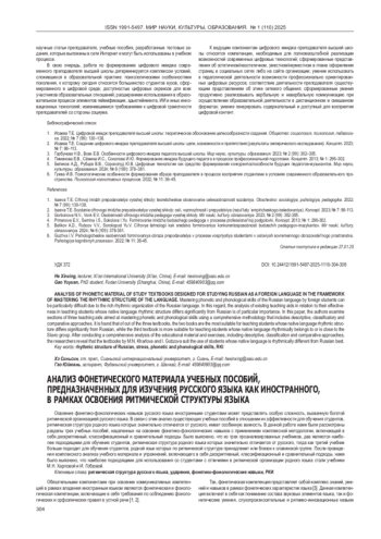 10. Ван Д., Ли С. Анализ материалов по обучению китайских студентов фонетической природе русского языка: произношение, ритмика, ударение. Педагогическое образование в России. 2021; № 4: 74-83.