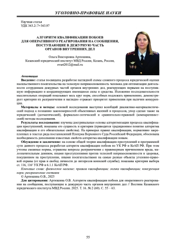 1. Казаченок В.В. Организационно-правовой механизм реагирования дежурных частей органов внутренних дел на сообщения о побоях // Юридическая наука и право охранительная практика. 2020. № 4 (54). С. 66-73. EDN: YGXZAG