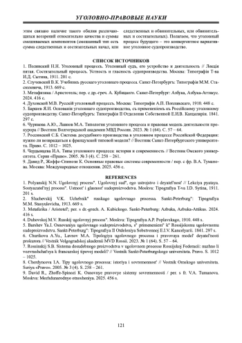 8. Чердынцева И.А. Типы уголовного процесса: история и современность // Вестник Омского университета. Серия “Право”. 2005. № 3 (4). С. 258 - 261.