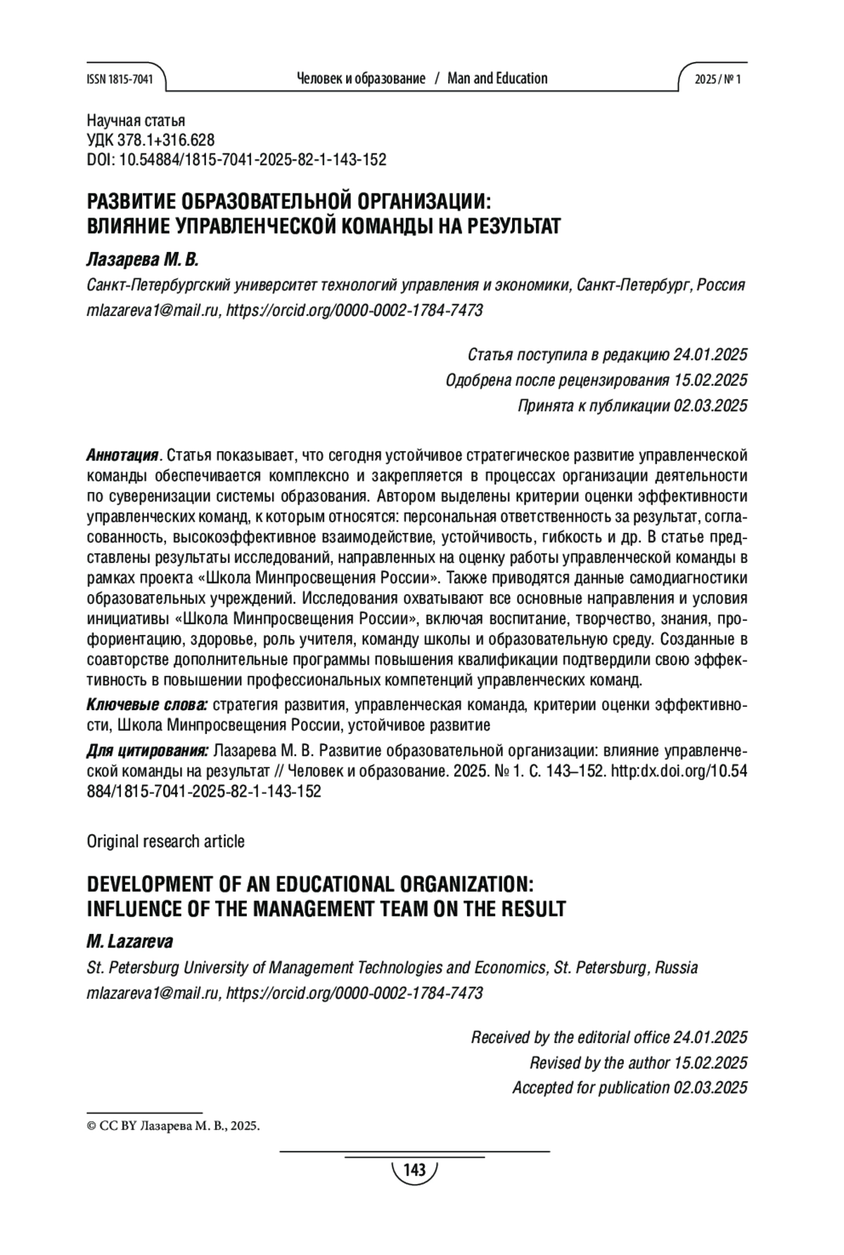 6. Лазарева М. В., Губанова Е. В. Сопровождение профессионального развития управленческих кадров образовательных организаций. СПб.: Изд-во СПбУТУиЭ, 2022. 234 с.