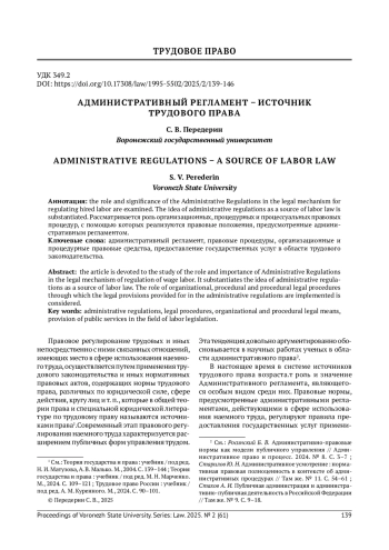 Разработка и принятие административных регламентов, регулирующих деятельность Минтруда и Роструда, их территориальных органов, а также должностных лиц, в сфере оказания различных государственных услуг в области использования различных видов наемного труда, как и всех остальных регламентов, утверждаемых федеральными и исполнительными органами власти, осуществляется на основе федерального законодательства, включающего: Федеральный закон от 27 июля 2010 г. № 210-ФЗ «Об организации предоставления государственных и муниципальных услуг»3; постановление Правительства РФ от 20 июля 2021 г. № 1228 «Об утверждении Правил разработки и утверждения регламентов предоставления государственных и муниципальных услуг»4; постановление Правительства РФ от 14 октября 2023 г. № 1706 «Об особенностях разработки, согласования, проведения экспертизы и утверждения административных регламентов предоставления государственных услуг в 2024 и 2025 годах, в том числе без использования федеральной информационной системы, обеспечивающей ведение федерального реестра государственных услуг»5 и другие нормативные правовые акты.