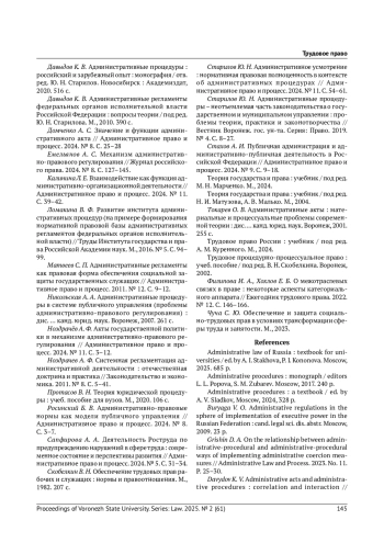 7. Давыдов К. В. Административные процедуры: российский и зарубежный опыт: монография / отв. ред. Ю. Н. Старилов. Новосибирск: Академиздат, 2020. 516 с.