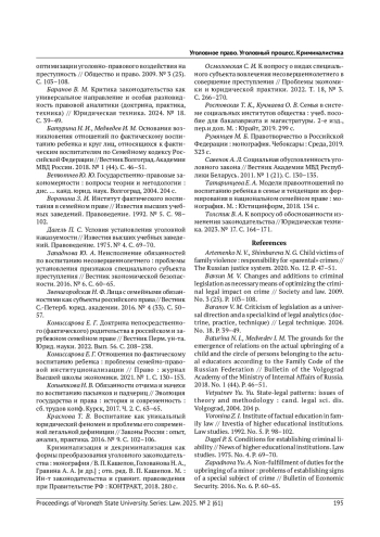 1. Артеменко Н. В., Шимбарева Н. Г. Дети - жертвы семейного насилия: ответственность за “родительские” преступления // Рос. юстиция. 2020. № 12. С. 47-51.