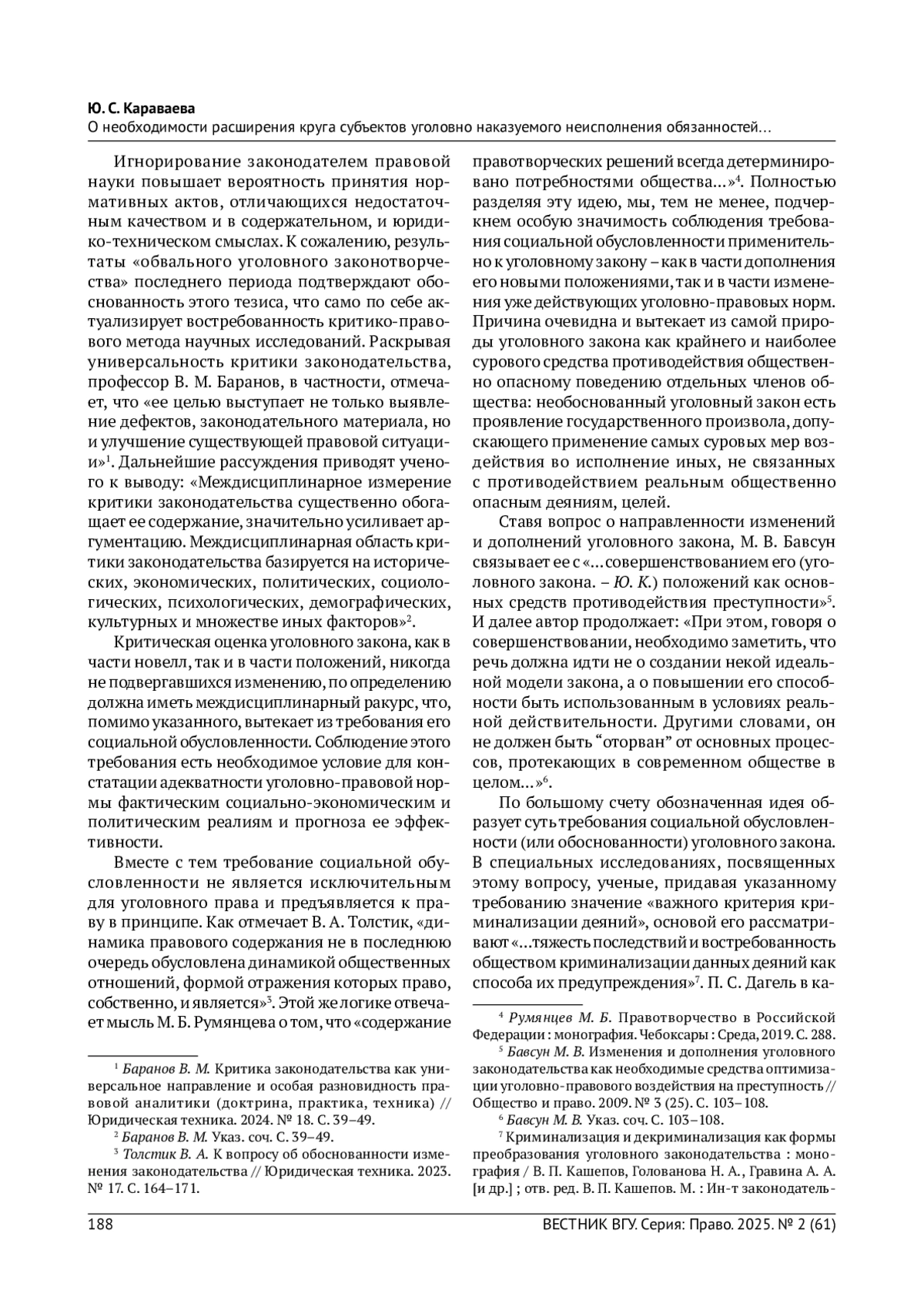 3. Баранов В. М. Критика законодательства как универсальное направление и особая разновидность правовой аналитики (доктрина, практика, техника) // Юридическая техника. 2024. № 18. С. 39-49. EDN: NYBYZD
