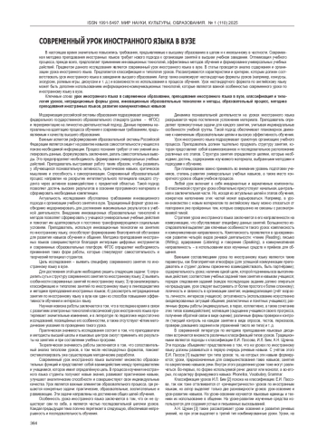 5. Левченко В.А. Специфика современного урока иностранного языка. Art Logos. 2021; № 3 (16): 100-104. EDN: KLEJIN