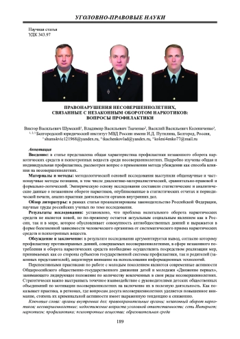 2. Кузина Л.С. Предупреждение вовлечения несовершеннолетних в незаконный оборот наркотических средств, психотропных веществ или их аналогов: дис.... канд. юрид. наук: 12.00.08. Краснодар, 2020. 258 с. EDN: BIWKYY