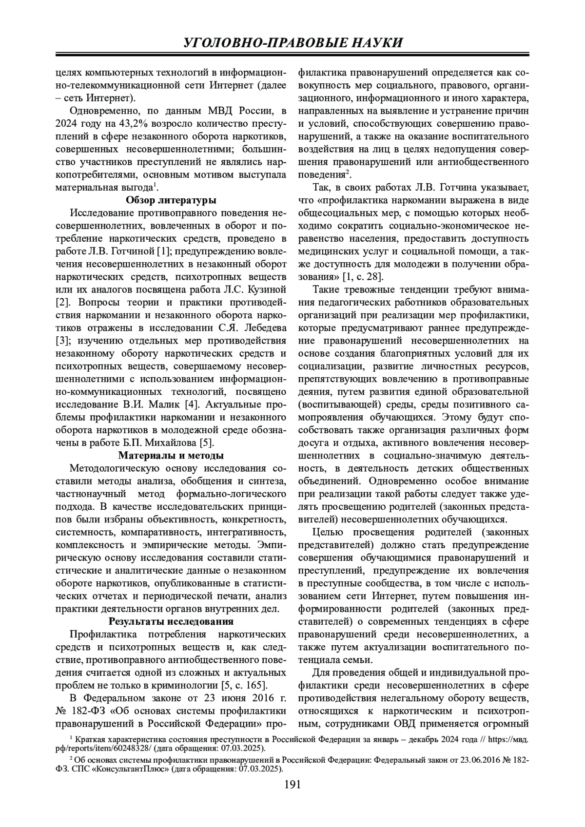 1. Готчина Л.В. Молодежный наркотизм в современной России: криминологический анализ и профилактика: автореф. дис.... д-ра юрид. наук: 12.00.08. Санкт-Петербург, 2011. 46 с. EDN: ZOHUWL