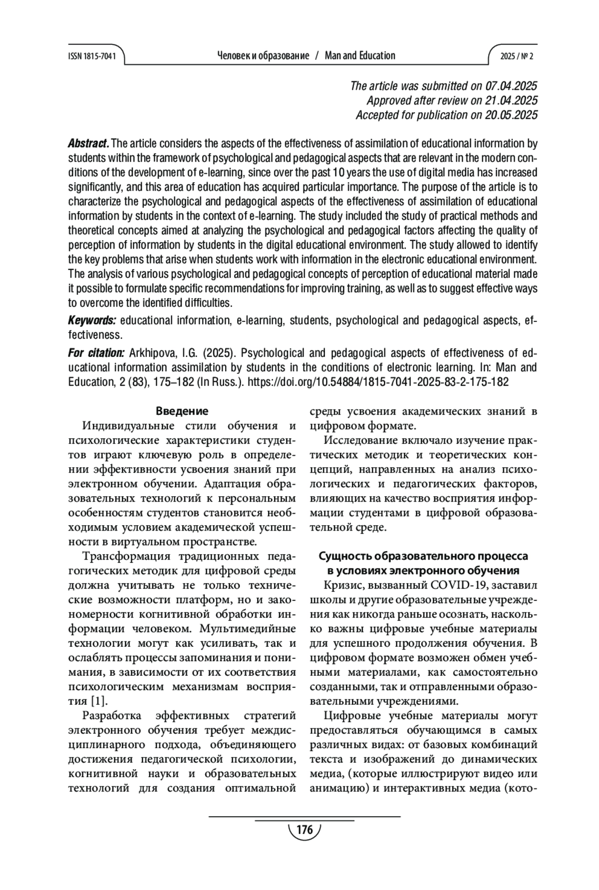 - 10.54884/1815-7041-2025-83-2-175-182