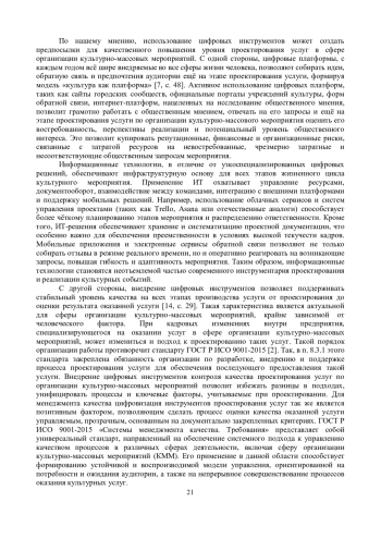 14. Петрова, Е.А. Информационные технологии как инструмент повышения эффективности культурно-досуговой деятельности // Культура и искусство. - 2023. - № 4(60). - С. 112-117.