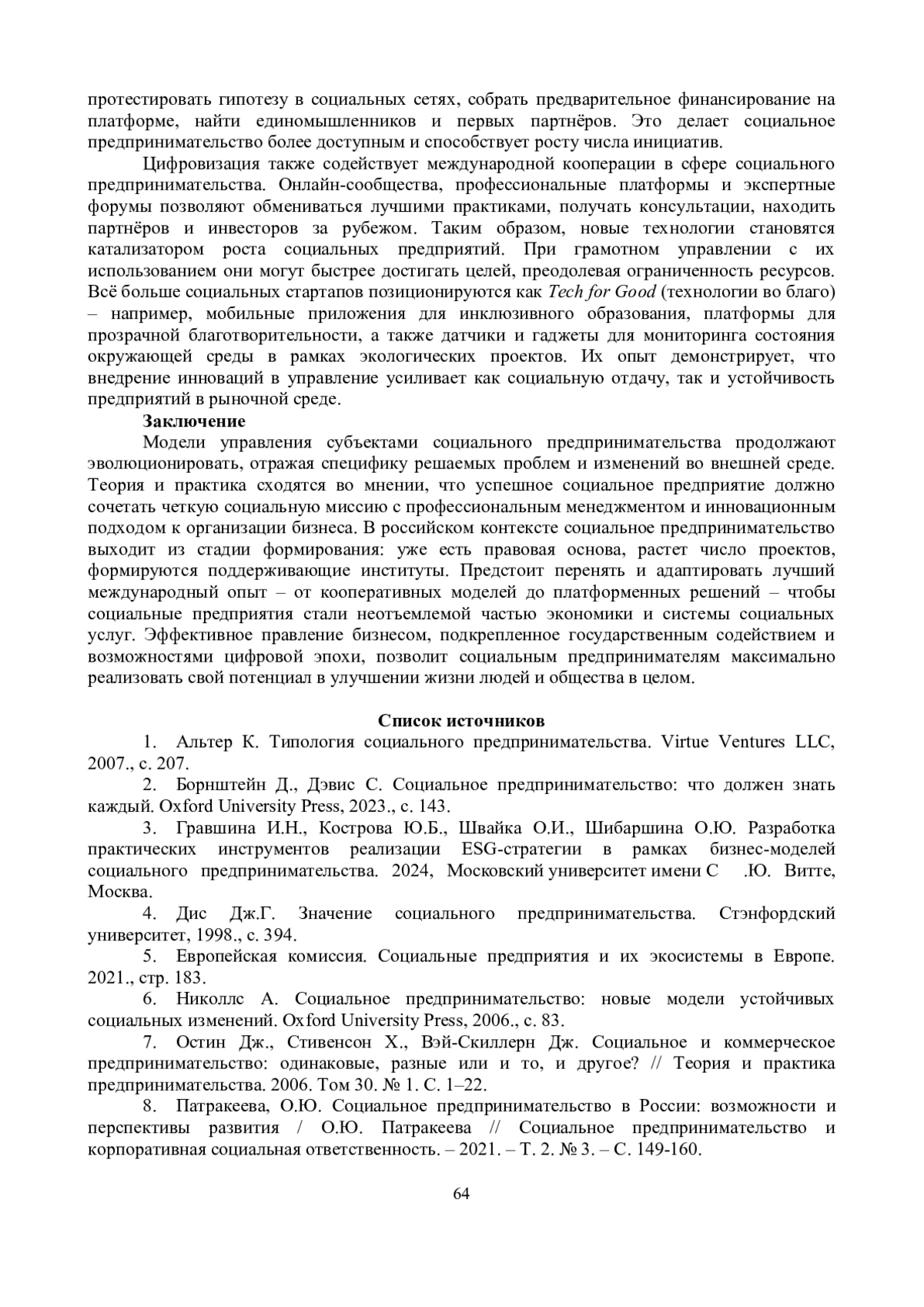 8. Патракеева, О.Ю. Социальное предпринимательство в России: возможности и перспективы развития / О.Ю. Патракеева // Социальное предпринимательство и корпоративная социальная ответственность. - 2021. - Т. 2. № 3. - С. 149-160.