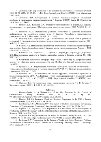 1. Гаммершмидт, А.А. Недостатки гиг-экономики в условиях глобализации // Молодой ученый. 2020. № 26 (316). С. 98-99. https://moluch.ru/archive/316/72097/(дата обращения: 15.12.2024).