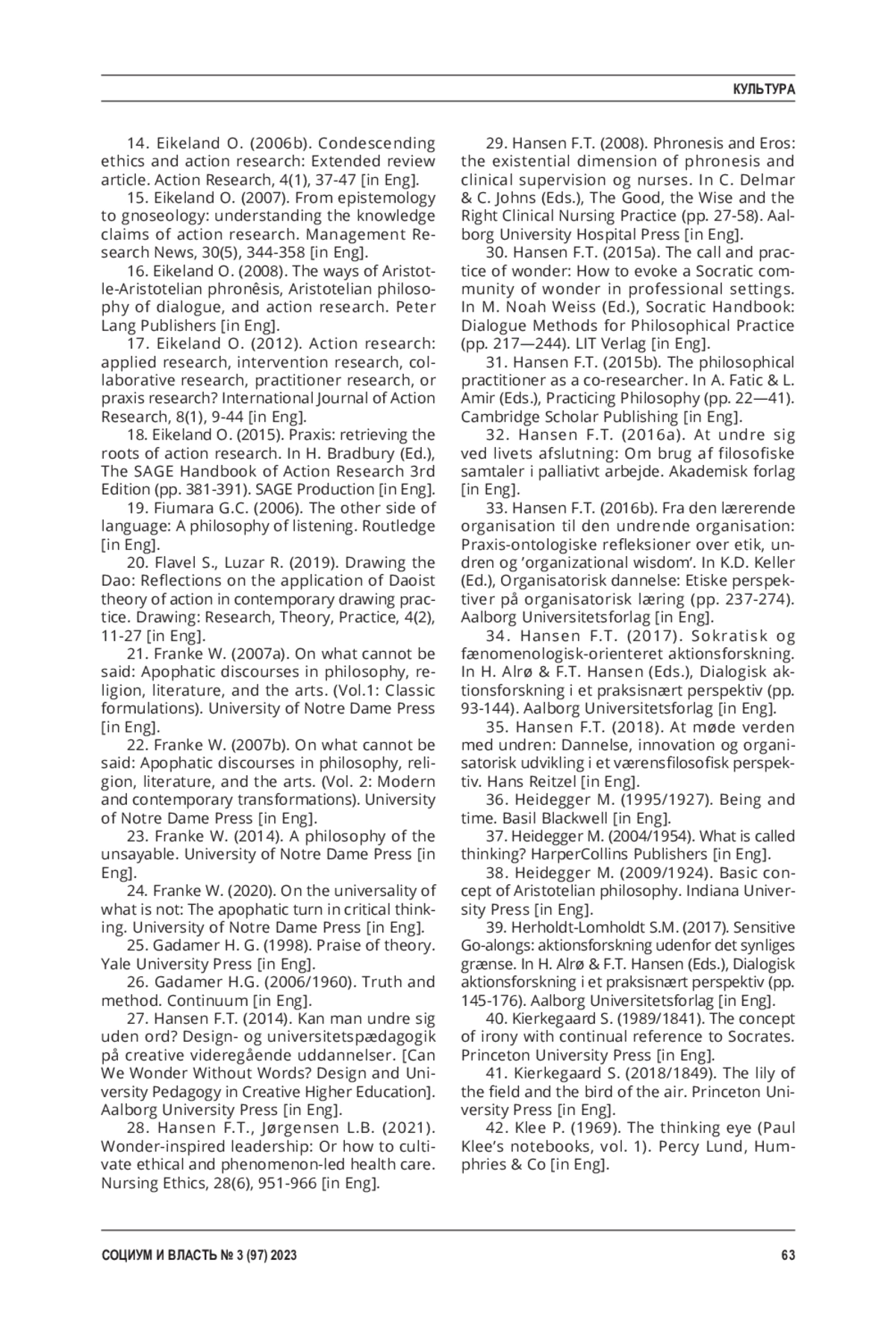 18. Eikeland O. (2015). Praxis: retrieving the roots of action research. In H. Bradbury (Ed.), The SAGE Handbook of Action Research 3rd Edition (pp. 381-391). SAGE Production [in Eng].