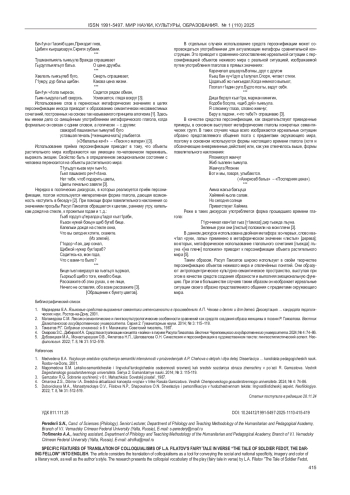 В данной работе перевод просторечий рассматривается как инструмент передачи социальной и национальной специфики, образности и колорита литературного произведения, а также авторского стиля. В исследовании представлена просторечная лексика пьесы (сказки в стихах) Л. А. Филатова «Про Федота-стрельца, удалого молодца», которая классифицирована по своему составу и делится на фонетическую, словообразовательную, морфологическую, семантическую и формально-семантическую. Приводятся продуктивные переводческие приемы, использованные в переводе на английский язык А. С. Вагапова, среди которых ведущими являются стилистическая нейтрализация, опущение, смысловое развитие, использование функциональных аналогов, дополнение, генерализация, конкретизация. В основе исследования лежат методы сплошной и случайной выборки, описательный метод, методы сопоставительного и контекстуального анализа.